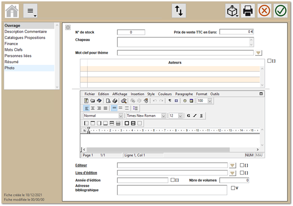 - Création de fiches ouvrages détaillées ;